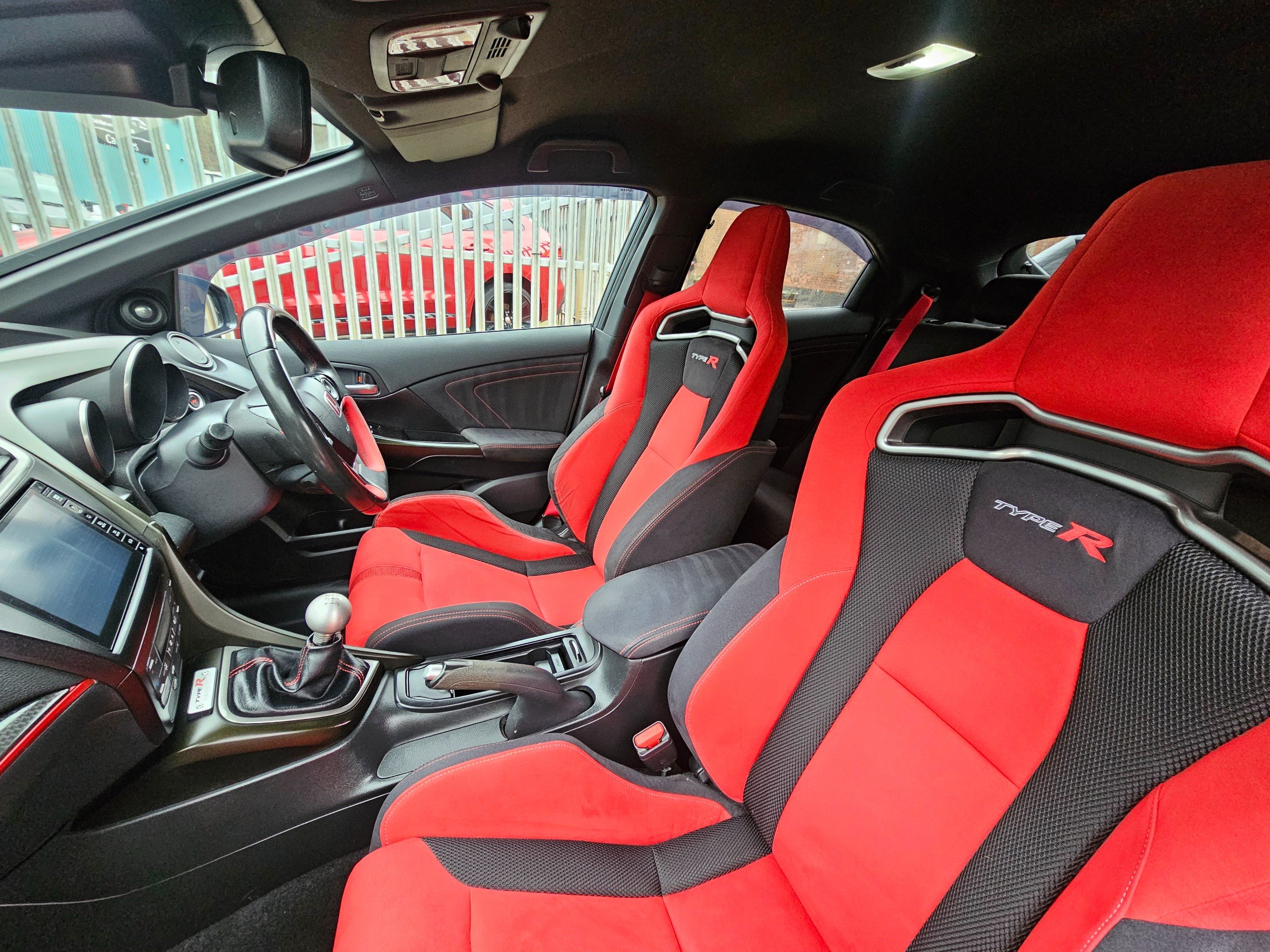 - Sports Seats with Integrated Headrest and Red Suede Type Fabric